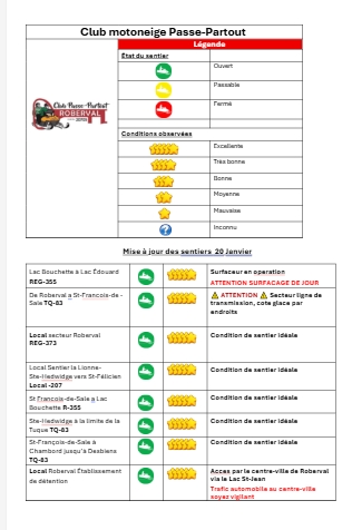 • Conditions de sentier